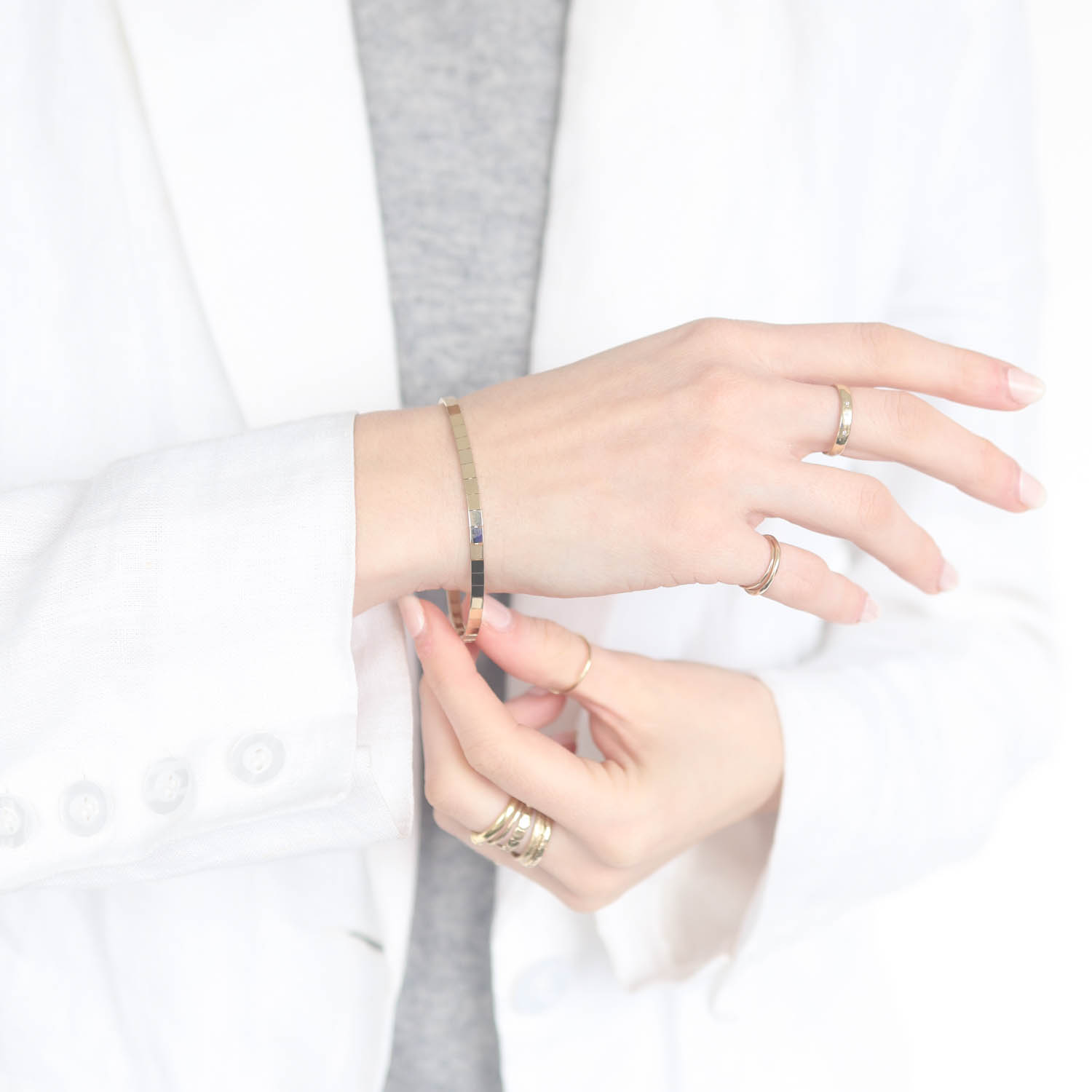 This bracelet’s unique, abstract design holds strength in versatility, layering beautifully with anything.