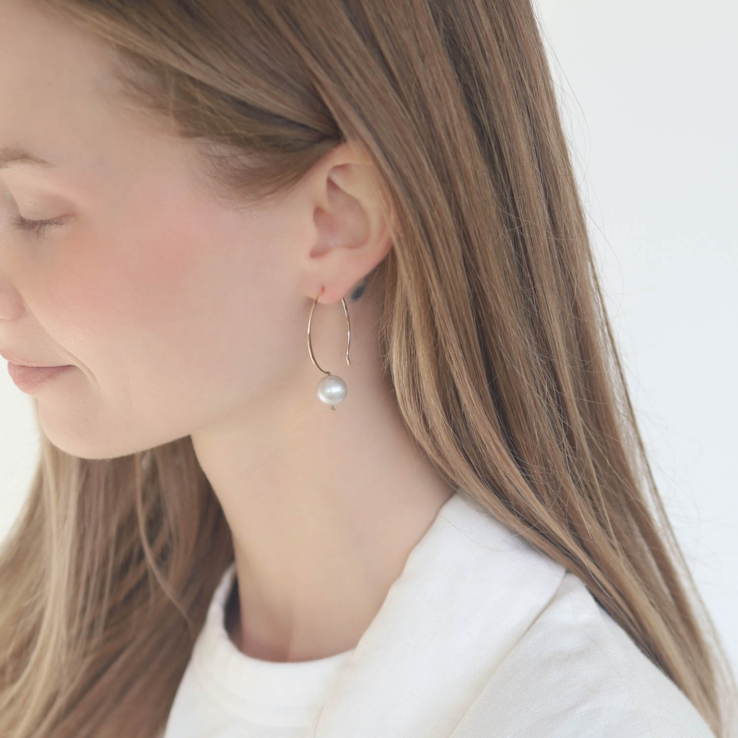 These delicate hoops are the perfect cross between elegant and modern, capped by a luminous pearl.