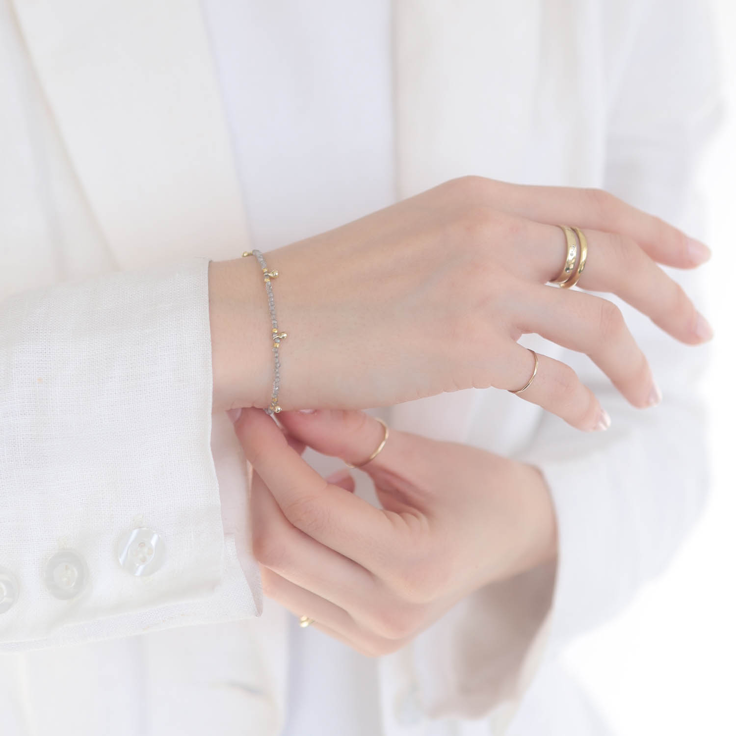 This beaded bracelet celebrates the natural beauty of labradorite stones by enhancing the flow of beads with gold fragments. It is the perfect addition to your favorite layers.