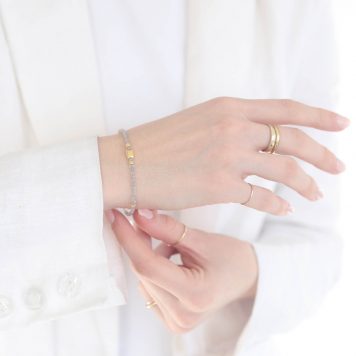 This beaded bracelet celebrates the natural beauty of malachite stones by enhancing the flow of beads with gold fragments. It is the perfect addition to your favorite layers.
