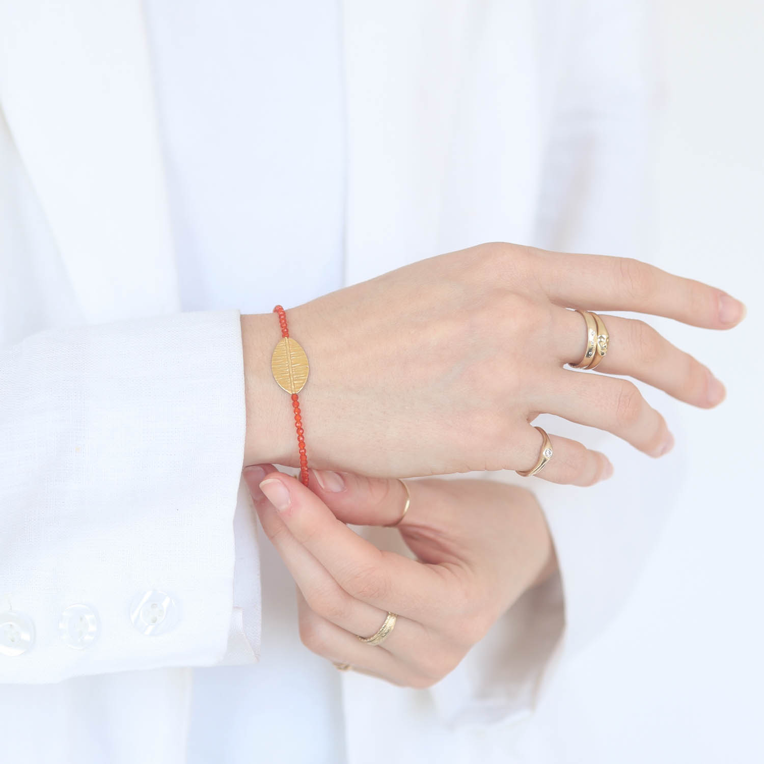 Enhance your favorite layers with this carnelian beaded bracelet, adorned with an ornate gold charm.