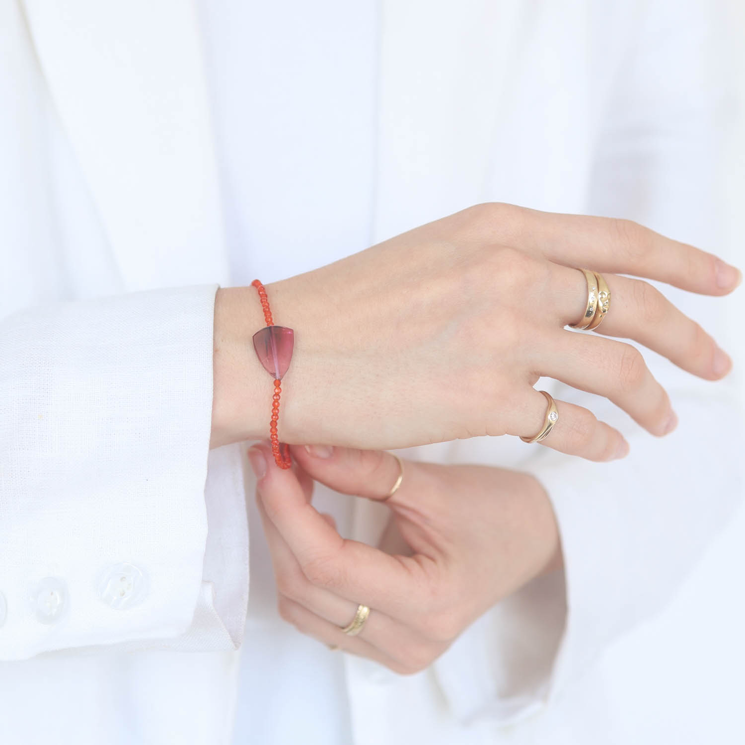 Enhance your favorite layers with this carnelian and tourmaline beaded bracelet. Carnelian is known to be the stone of creativity and confidence, while tourmaline is said to provide happiness and healing to its wearer.