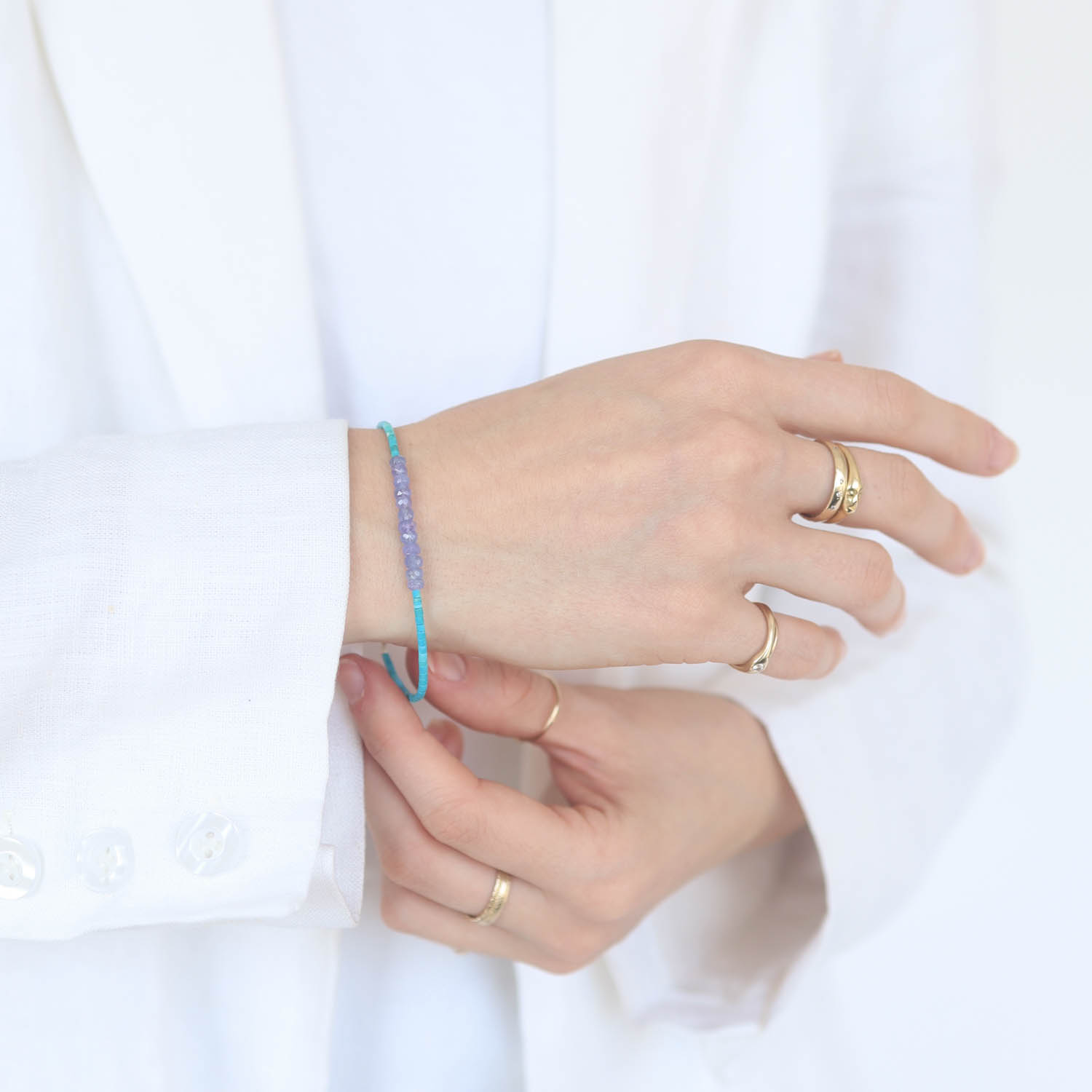Enhance your favorite layers with this heishi turquoise and tanzanite beaded bracelet. Turquoise, with its dreamy blue-green hues, is thought to protect from negativity and harm and to help promote a sense of peace and tranquility, while tanzanite is thought to be a calming and soothing stone.