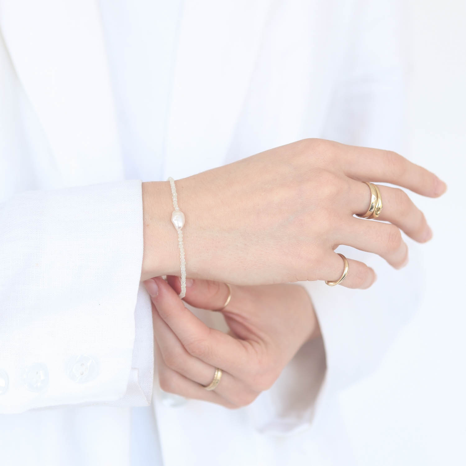 Enhance your favorite layers with this rainbow moonstone and keishi pearl beaded bracelet. Moonstone is believed to hold the power of mystery and is a talisman of the inward journey, while pearl is believed to symbolize generosity, encourage perfection, and bring serenity to the wearer.