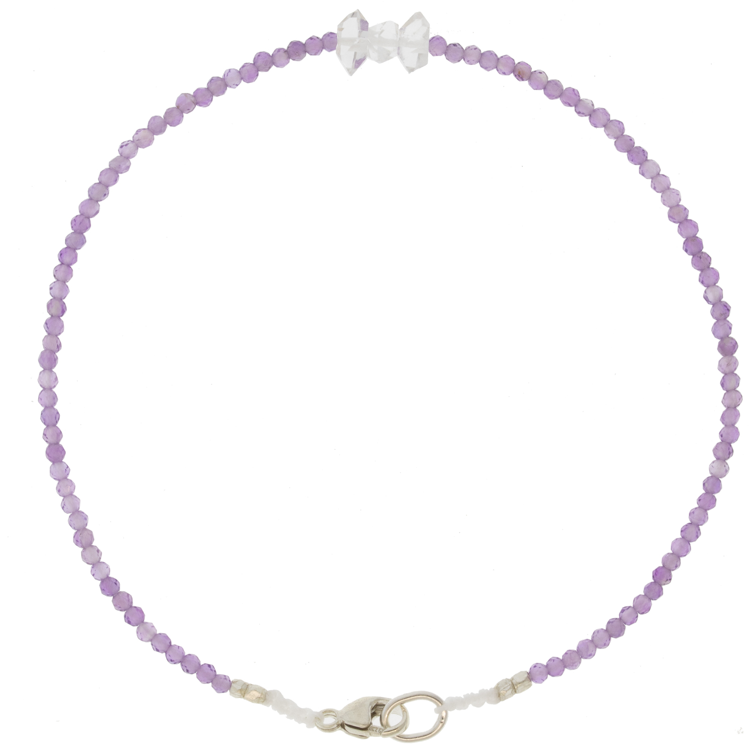Enhance your favorite layers with this amethyst and herkimer quartz beaded bracelet. Amethyst is thought to relieve stress and strain, while quartz is thought to amplify energy and promote emotional healing.