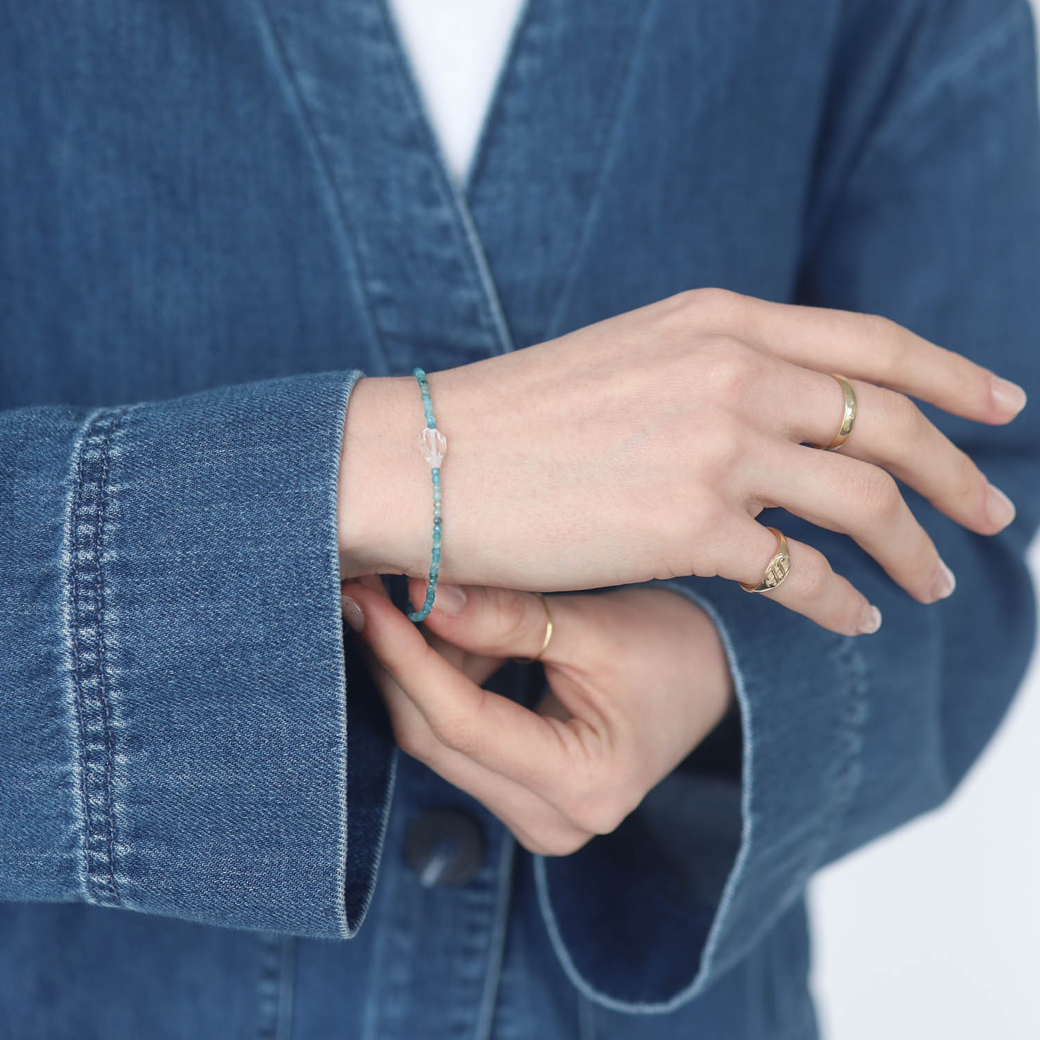 Enhance your favorite layers with this adorable apatite and herkimer quartz beaded bracelet.