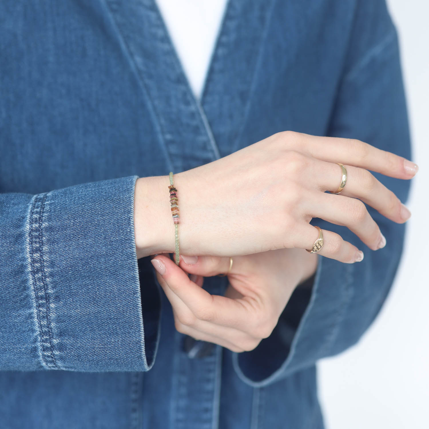 Enhance your favorite layers with this adorable green apatite and tourmaline beaded bracelet.