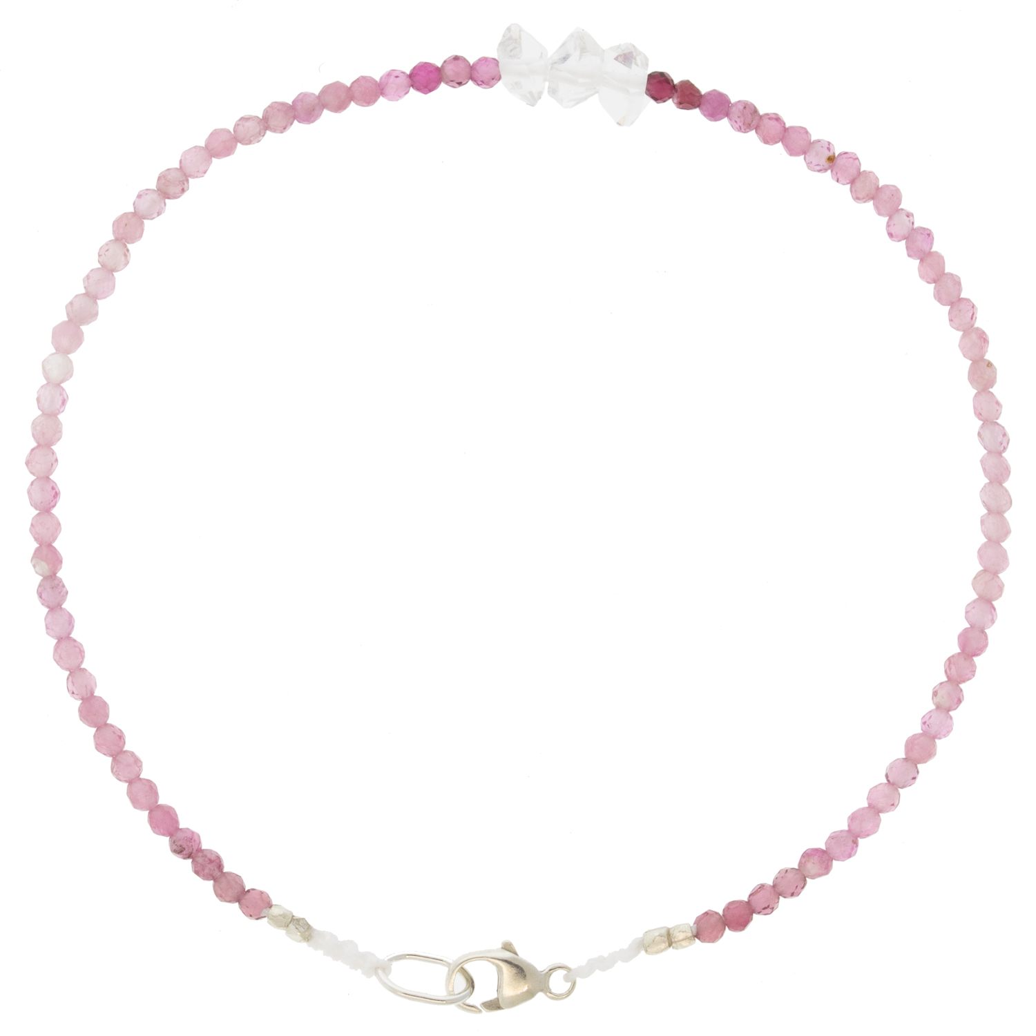 Enhance your favorite layers with this pink tourmaline and herkimer quartz beaded bracelet. Pink tourmaline is thought to radiate love and promote joy and happiness in its wearer, while quartz is thought to amplify energy and promote emotional healing.