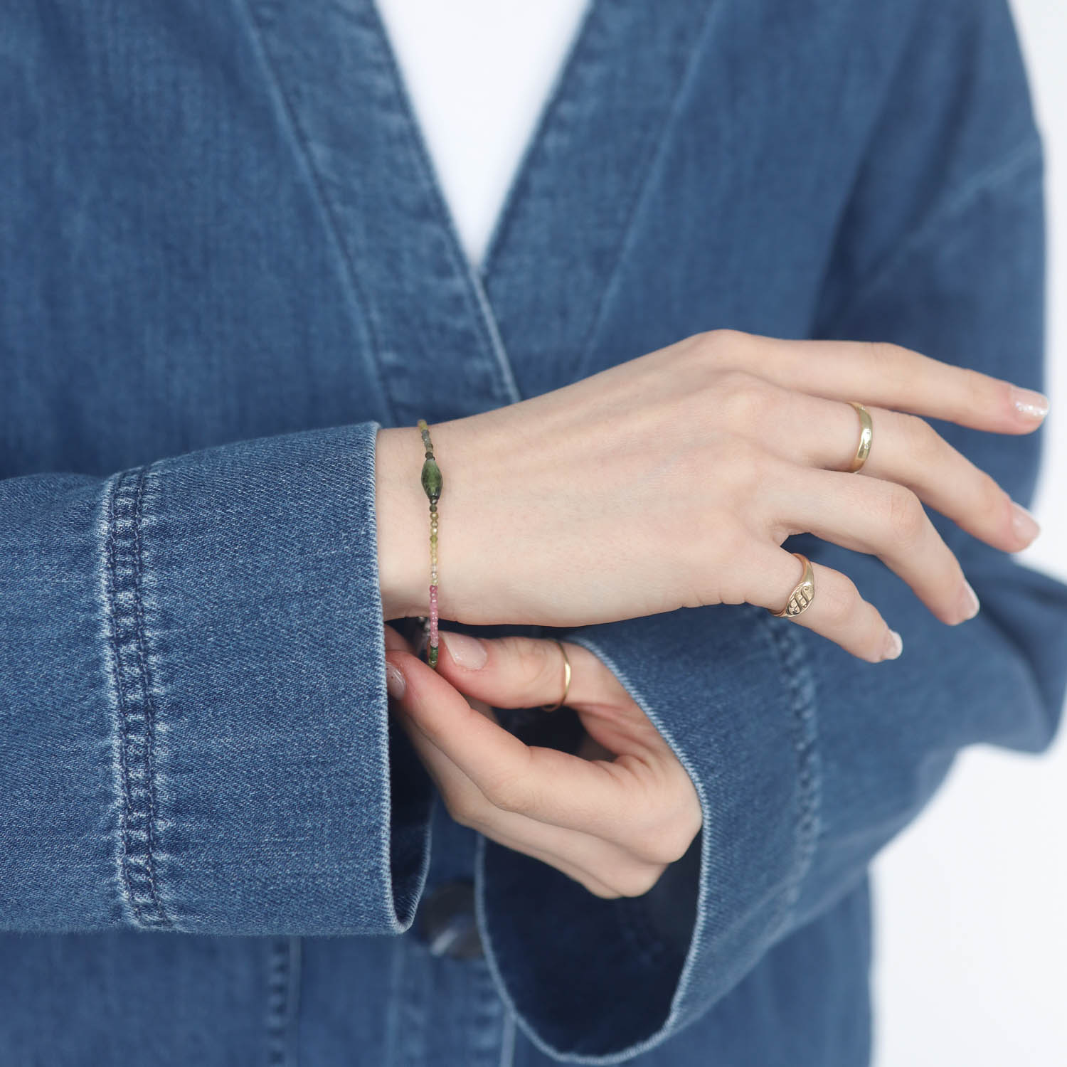 Enhance your favorite layers with this tourmaline beaded bracelet. Tourmaline said to provide happiness and healing to its wearer.