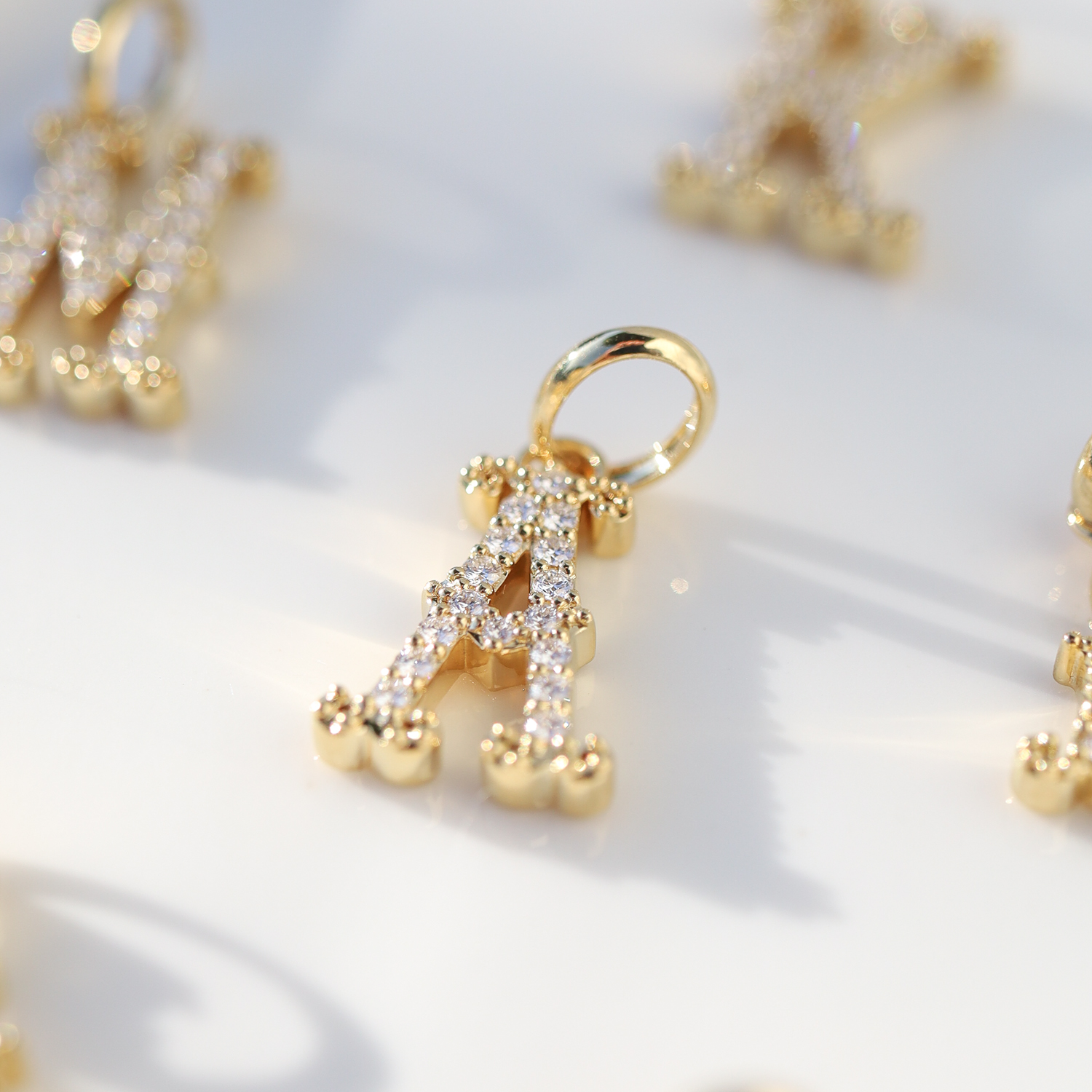 This pave diamond letter “A” charm is a stunning addition to any chain and an unforgettable gift.