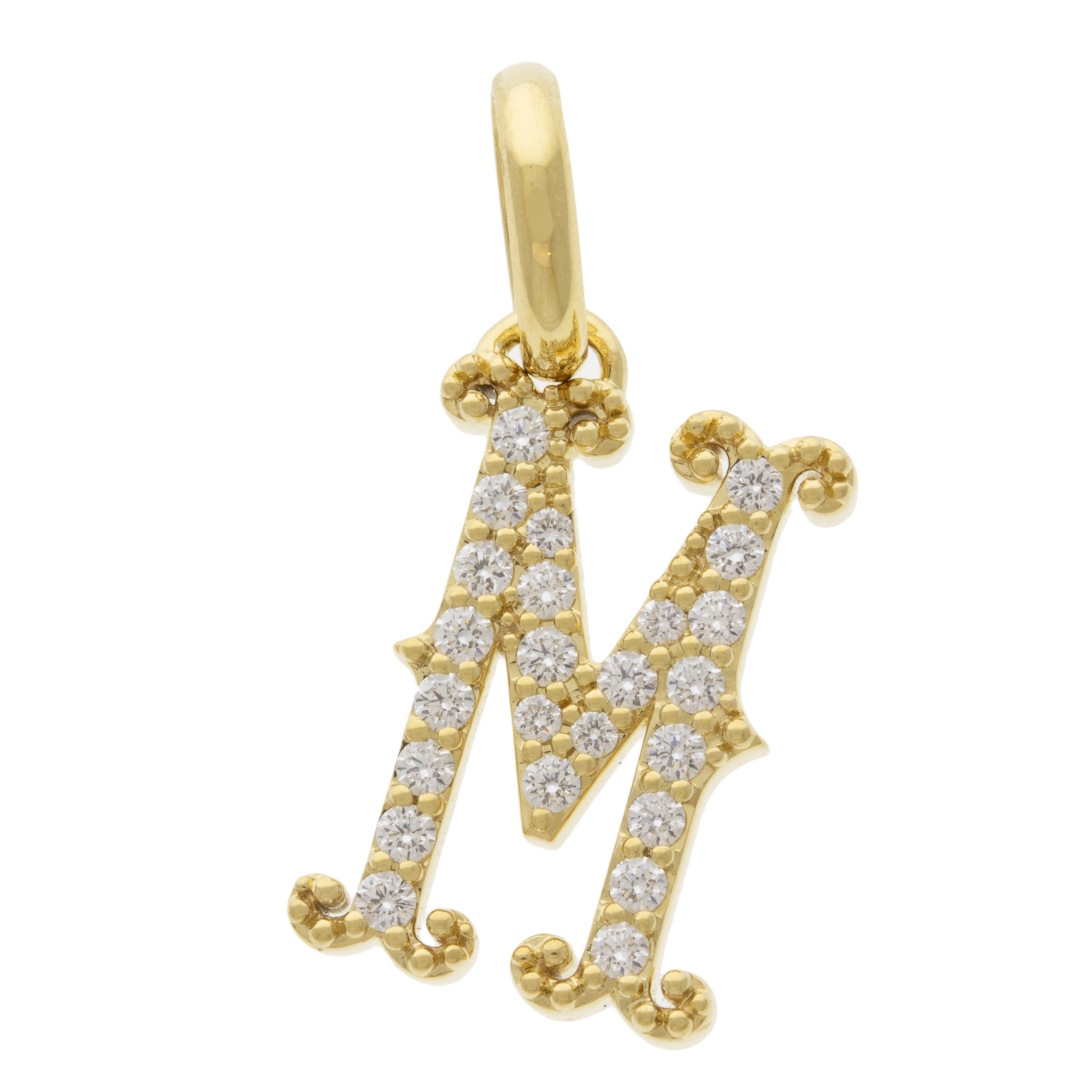 This pave diamond letter “M” charm is a stunning addition to any chain and an unforgettable gift.