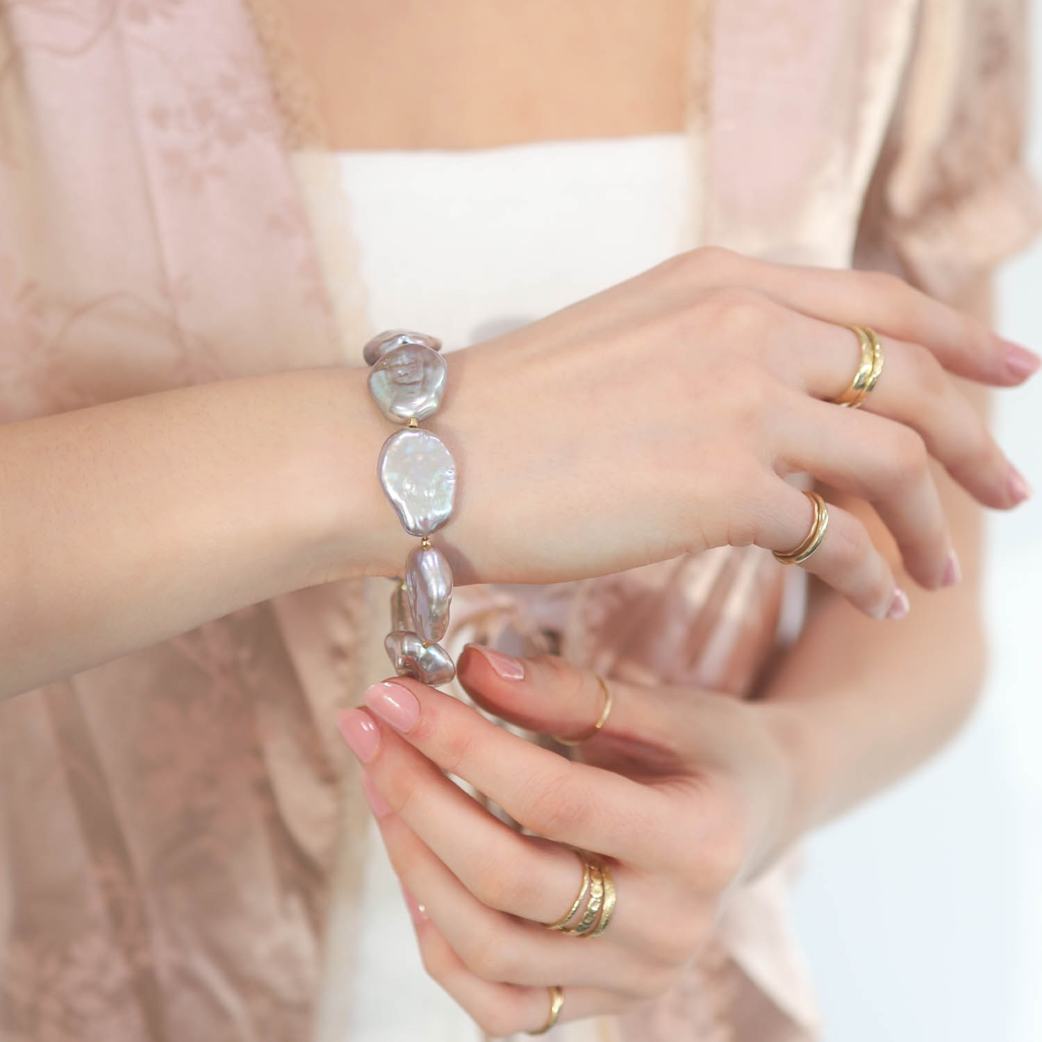 Silver freshwater coin pearls are the perfect statement piece, with a charming amount of shine, and a dramatic addition to your layers.