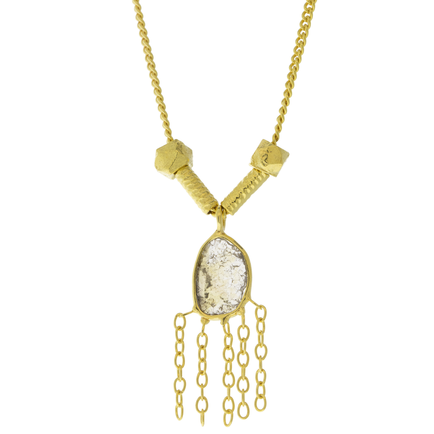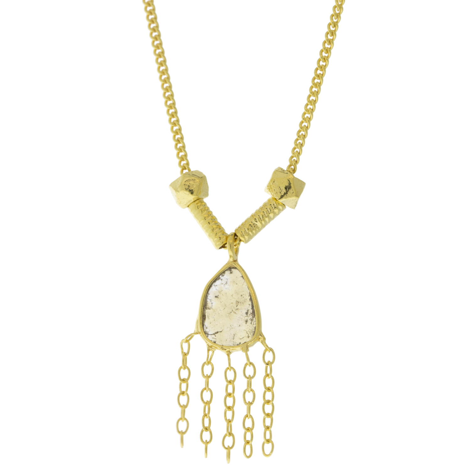 An organically-shaped diamond slice, in its ultra-minimal bezel on a delicate gold chain, is the perfect pendant for a touch of glam.