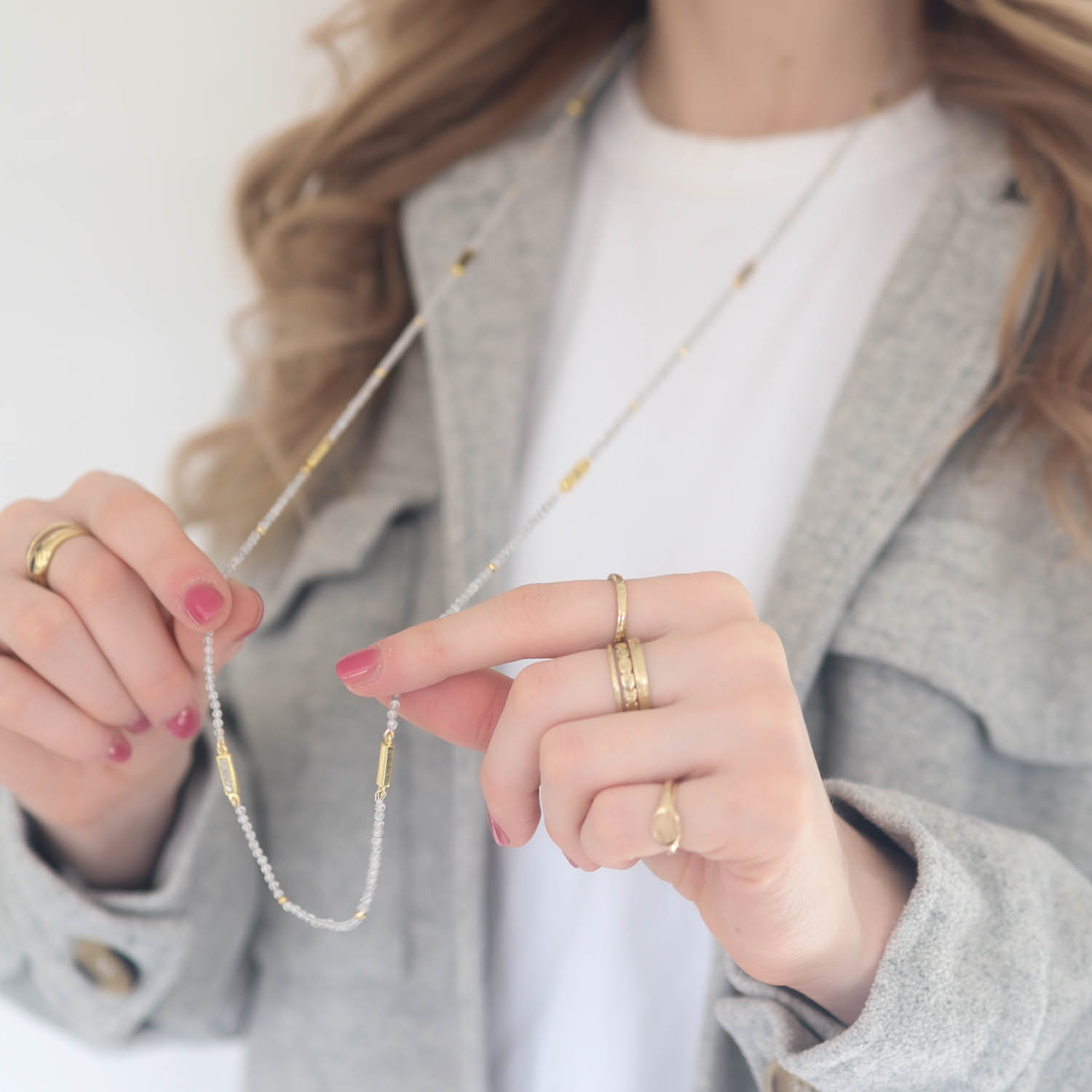 SKU: BNJ-300-045-White See more by Shana Gulati See all Jewelry, NecklacesSee others with metal color yellowSee others tagged diamond, labradorite, pyrite