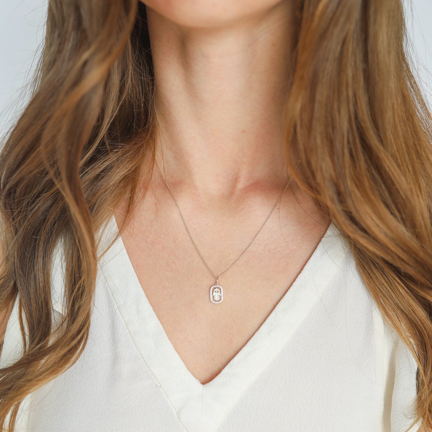 Hamsa motifs have long been worn not only for protection, but to bring about good luck and fortune. We think this one, with its gorgeous pavé diamond border, makes for a beautiful everyday talisman.
