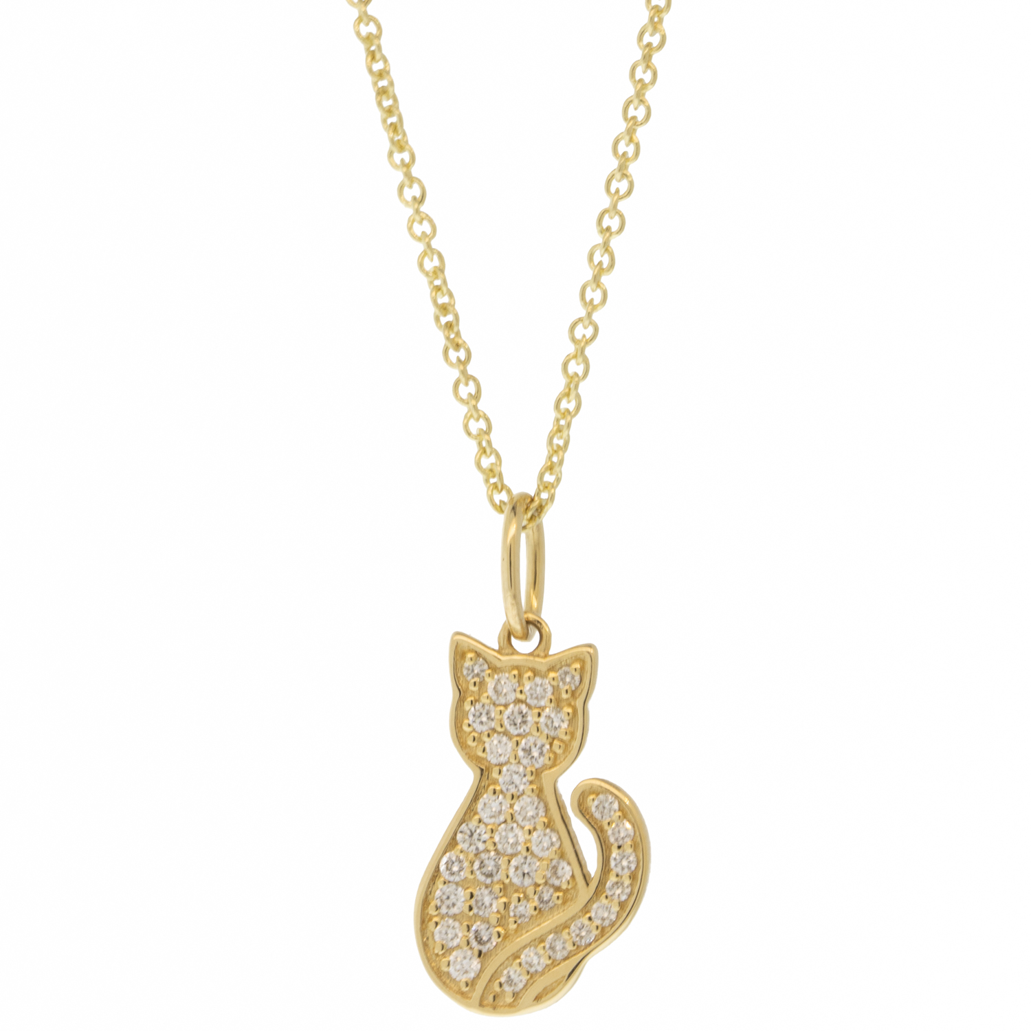 Sydney Evan: Sitting Cat Charm Necklace, 14k, Diamonds quantity