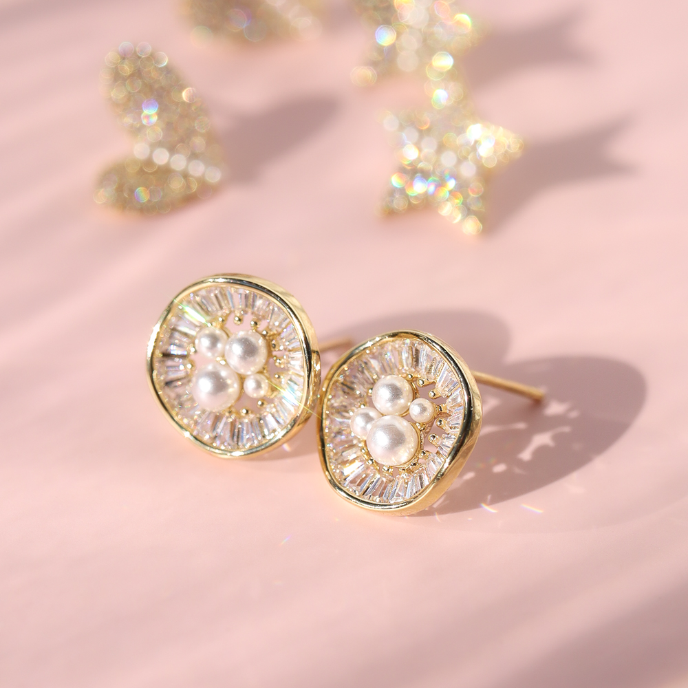 Sparkles and pearls are some of our favorite pairings. Baguette CZ and pearls mix to form these fantastic posts.