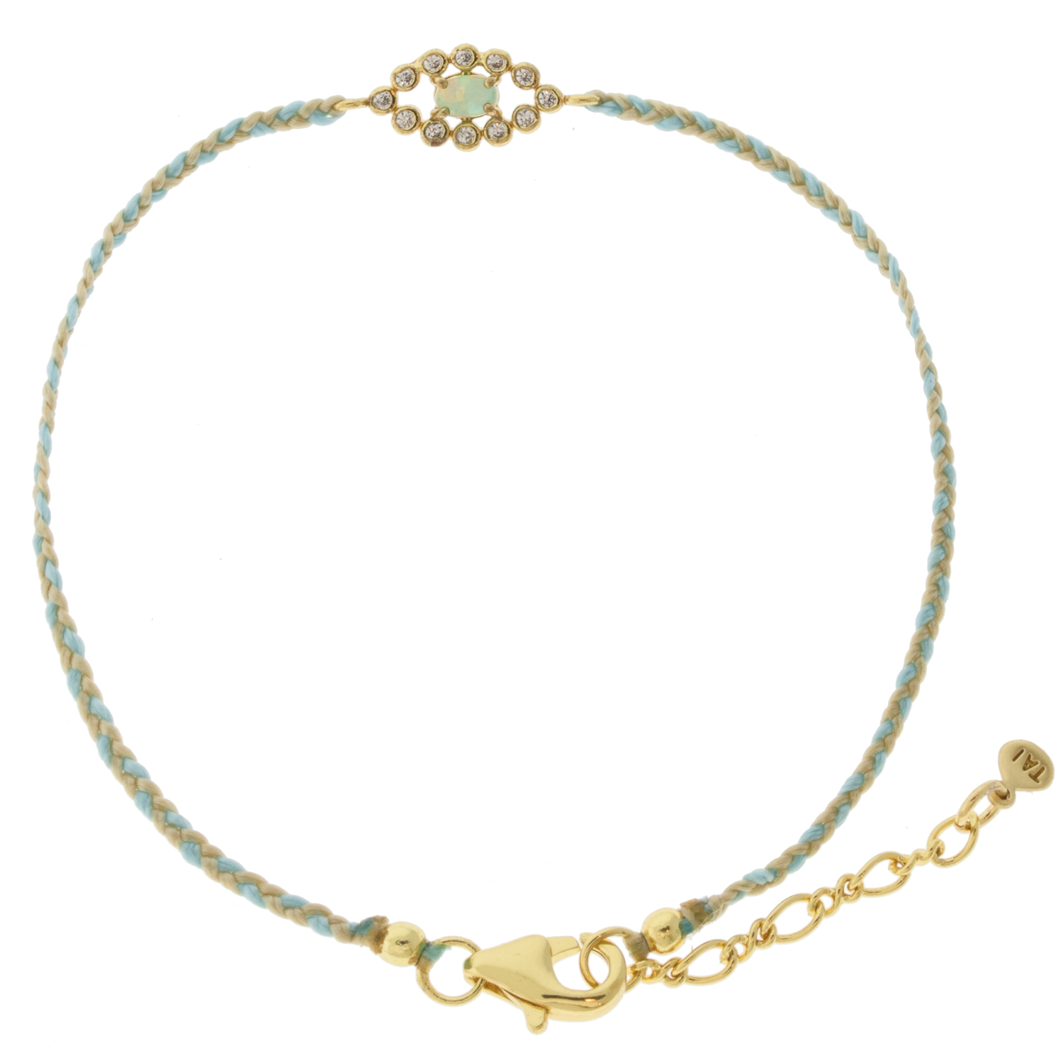 An opal evil eye falls gently on this blue and cream cord, creating a piece that is perfect for layering or wearing solo. Evil eyes have long been worn as a talisman to ward off evil.