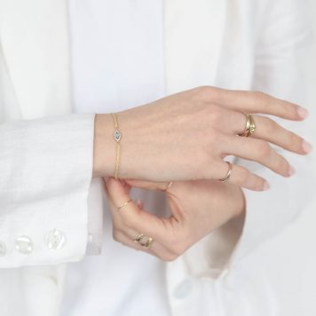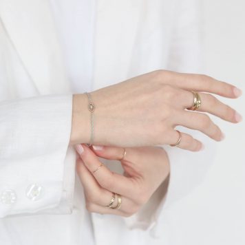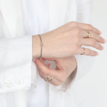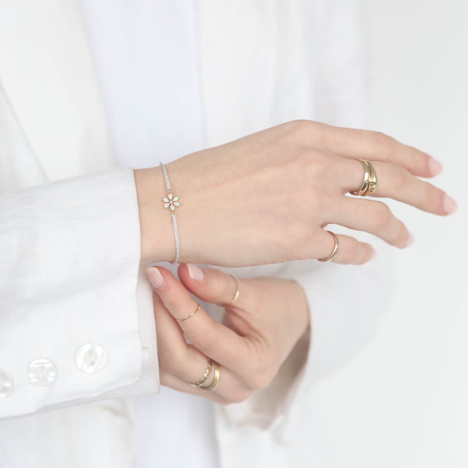 An opal flower falls gently on this light blue and pink cord, creating an adorable piece that is perfect for layering or wearing solo.