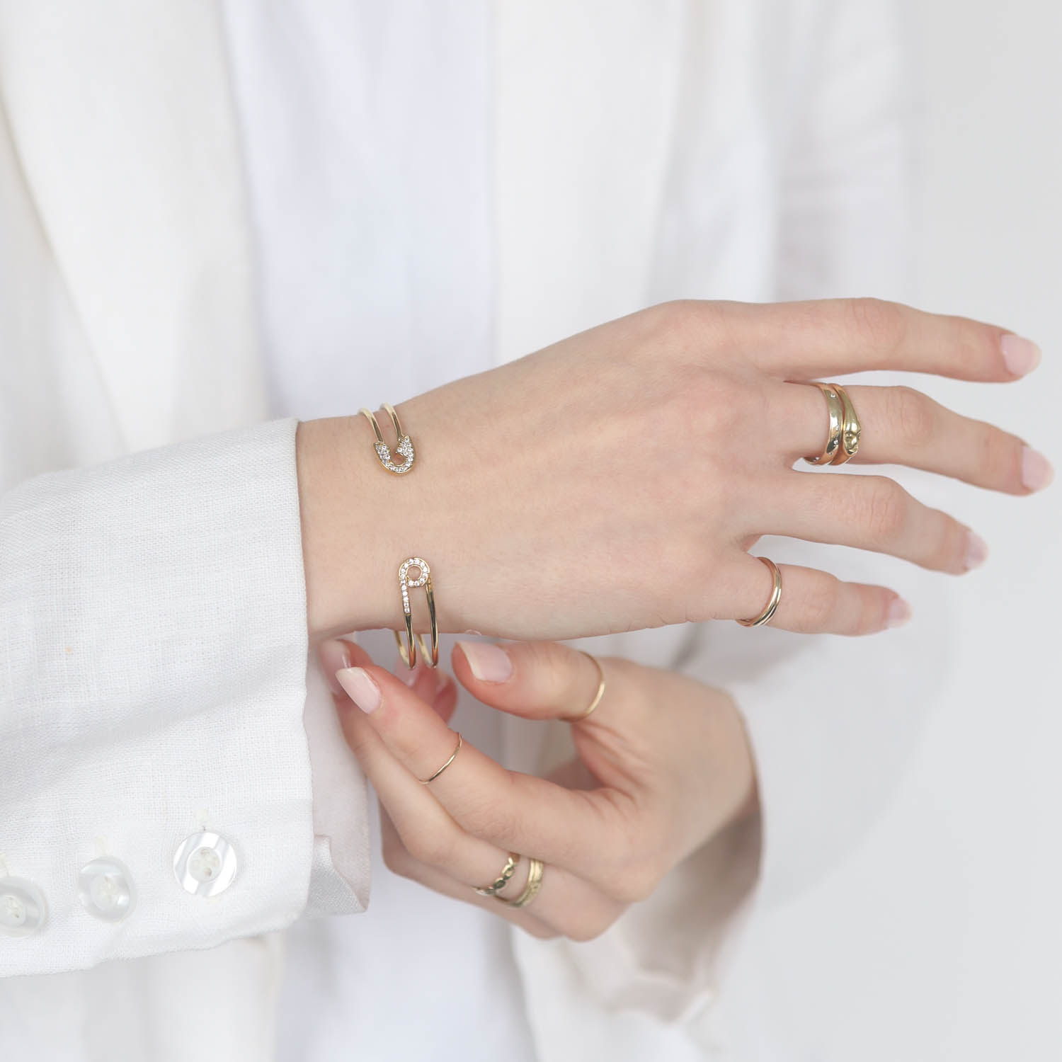 This bangle will give an easy edge to your layers with its twinkling stones and dynamic shape.