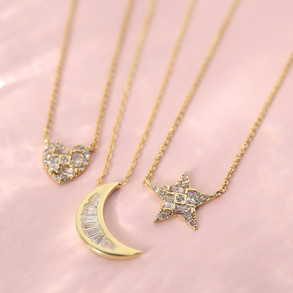 A sweet crescent moon, filled by twinkling CZ, dangles from a delicate gold chain. This precious necklace will make a wonderful gift, sure to be a favorite in your jewelry rotation.