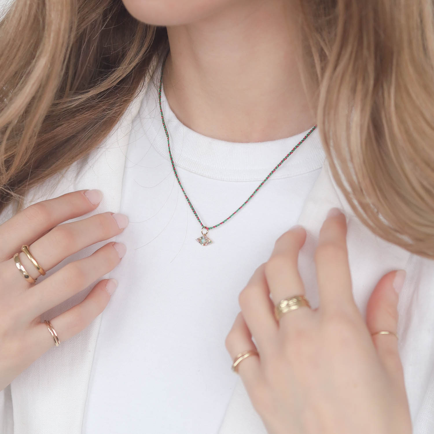 Opal Evil Eye Cord Necklace