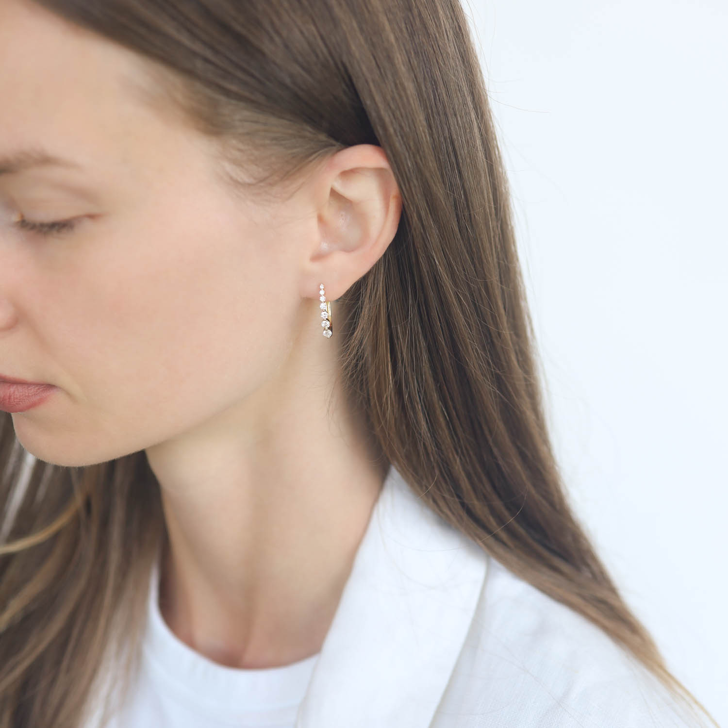 Graduated diamonds line this oval hoop. Perfectly dazzling on its own, or enhance your look by adding a charm.
