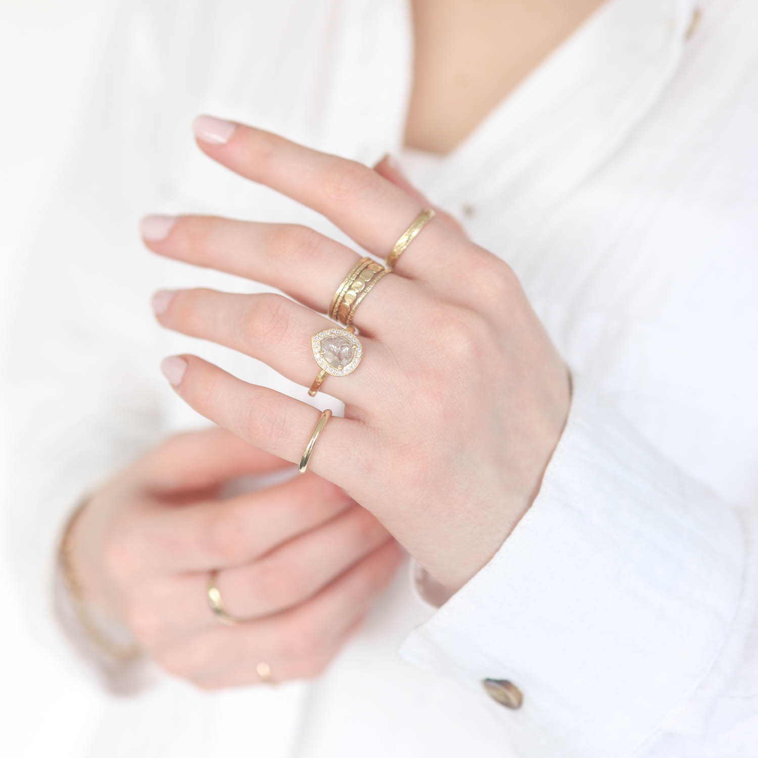 - Diamond halo, .17 TCW